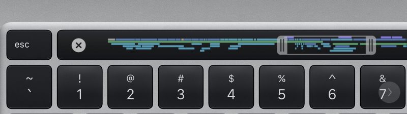 Per funzionalità, la Touch Bar è identica a quella delle generazioni precedenti, ma ora è più corta: il tasto Esc diventa fisico, e i tasti freccia assumono la vecchia conformazione a T rovesciata.
