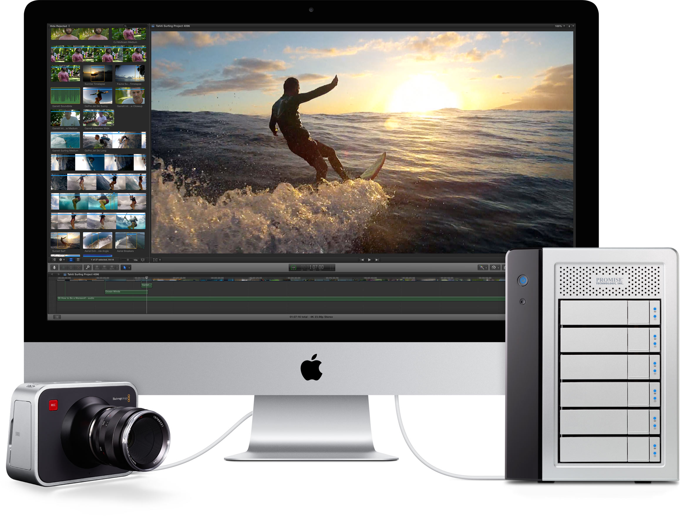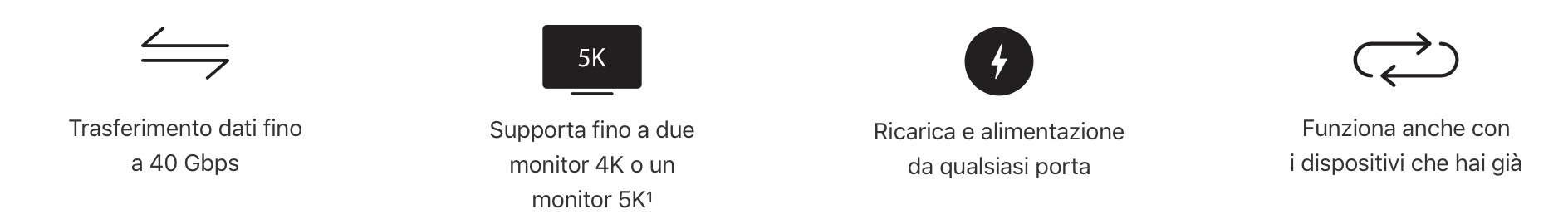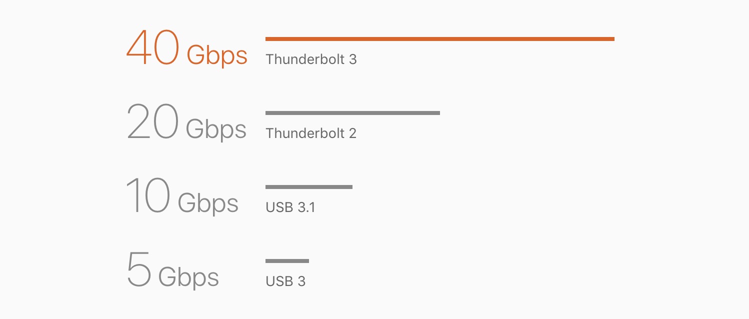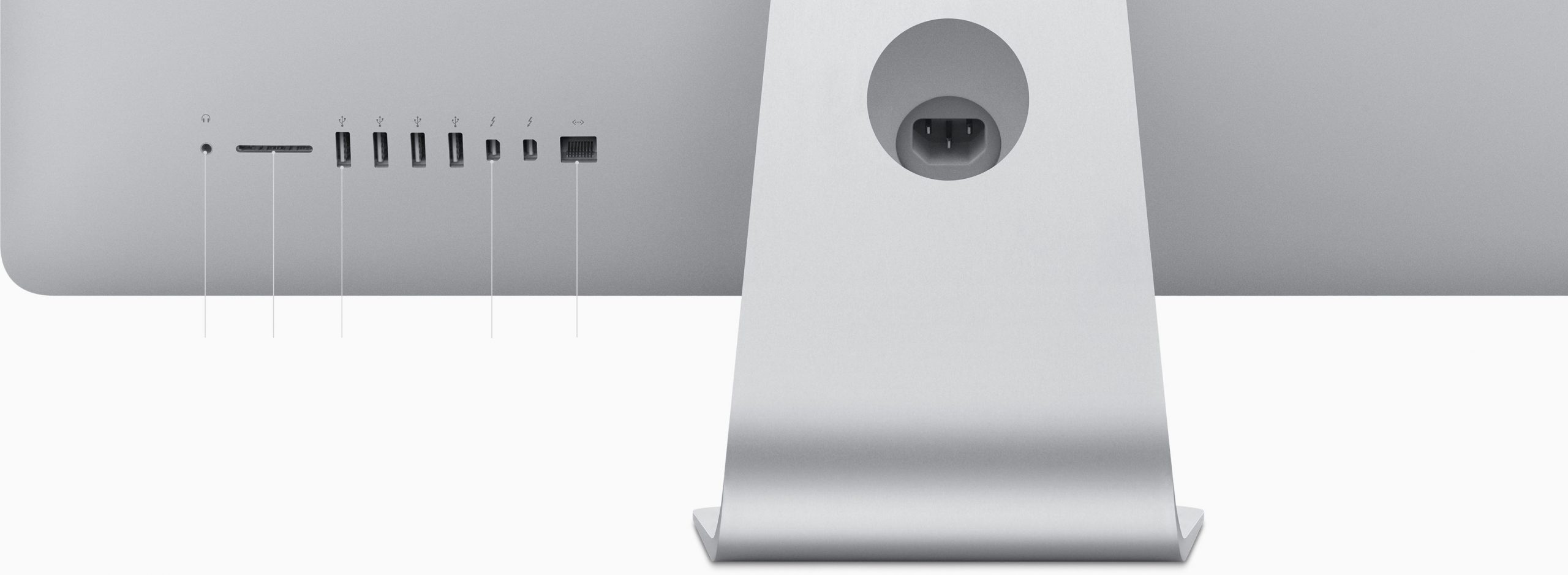 Ogni iMac ha due porte Thunderbolt 2 o Thunderbolt 3, velocissime e versatili che consentono di espandere a piacimento il computer. Grazie ad esse, potete trasferire dati da e sulle periferiche ad alte prestazioni a una velocità fino a 80 volte superiore rispetto alle porte USB 2, oltre 50 volte superiore rispetto a una FireWire 800 e 8 volte superiore rispetto a USB 3. E grazie all’ampiezza di banda fino a 40 Gbps, si può collegare in serie vari dispositivi ad alta velocità mantenendo sempre prestazioni ottimali.