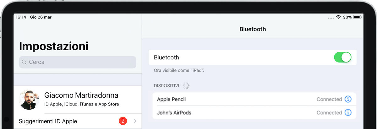 Per collegare mouse e tastiera Bluetooth ad iPad, basta seguire questi passaggi: